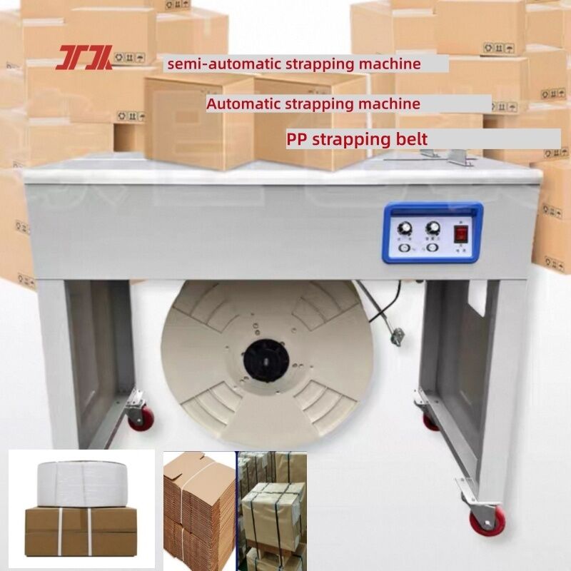 Les machines à bandes semi-automatiques nécessitent le placement manuel de la ceinture de bandes sur l'emballage; la machine serre, scelle et coupe automatiquement la ceinture.